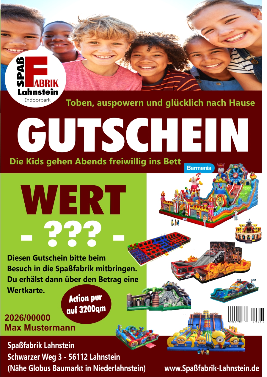 Wie wäre es zum Beispiel mit einem Gutschein von der Spaßfabrik !